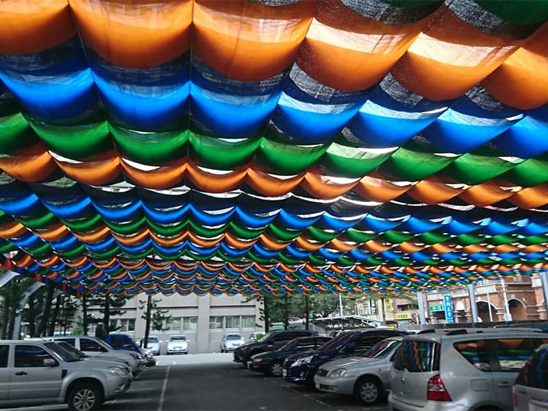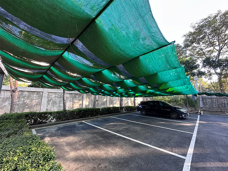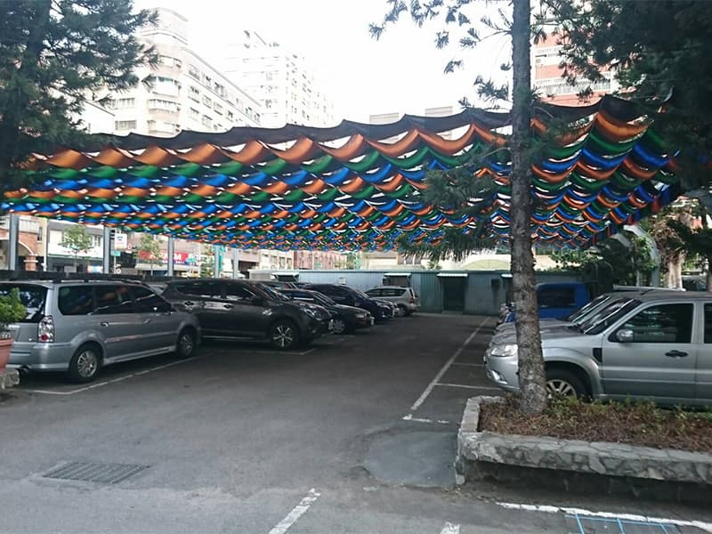 三冠牌RF圓扁針織停車場遮陽網應用實例|HunkunNET 煥坤